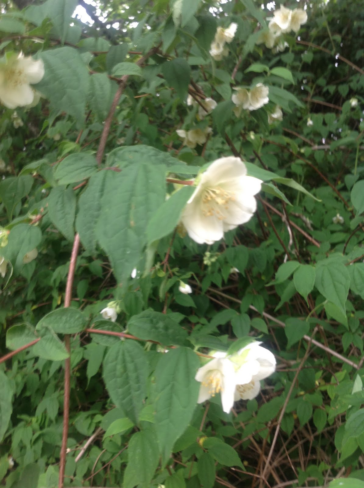 This is unfamiliar to me: tall canes, with many flowers. It is deciduous, and rampant. And pretty, as well..